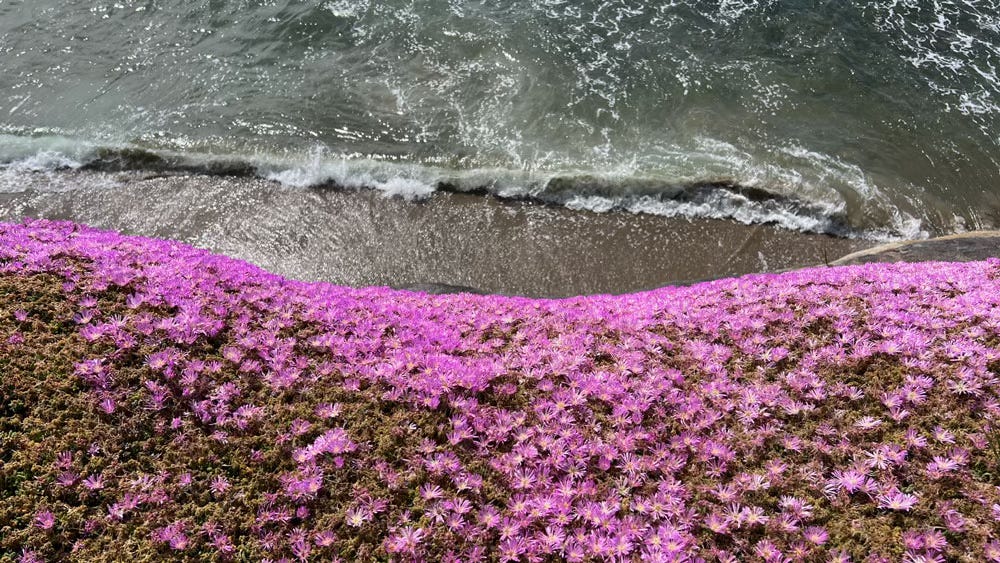 You take a photo of your bike against the backdrop of the ocean and the surfers and the kelp and the carpet of ice plant at the fence.